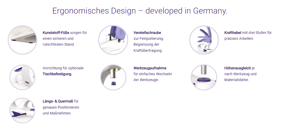 Das ergonomische Design und die innovative Mechanik sorgen für eine optimierte Kraftübertragung und erweitern dadurch die Einsatzmöglichkeiten des VARIO Creative® Tools.